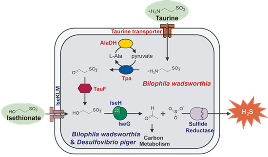 The carbon-sulfur bond in taurine is extremely strong, and cleavage of taurine to release the sulfur atom generally requires harsh reaction conditions and molecular oxygen. In this study, researchers have found that certain gut bacteria, which live in the absence of oxygen, can carry out taurine cleavage using a new chemical mechanism involving free radicals. This mechanism explains the decades-old mystery of how anaerobic bacteria are able to metabolize taurine and related sulfur-containing molecules in the absence of oxygen.