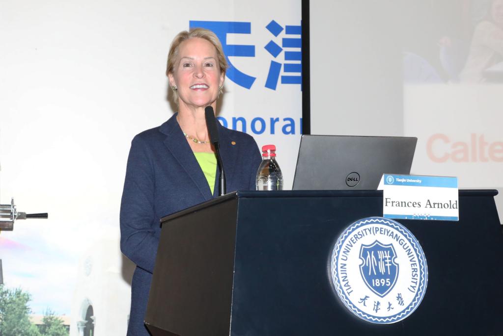 At 9 o'clock on October 16th, Prof. Frances H. Arnold, professor of Biochemistry & Bioengineering at the California Institute of Technology and the first American woman to receive the Nobel Prize in Chemistry (2018), was appointed as honorary professor at Tianjin University. The ceremony was held at the second floor of the Science Library.Professor Frances Arnold delivered lecture on the subject of Innovation By Evolution: Bringing New Chemistry to Life.