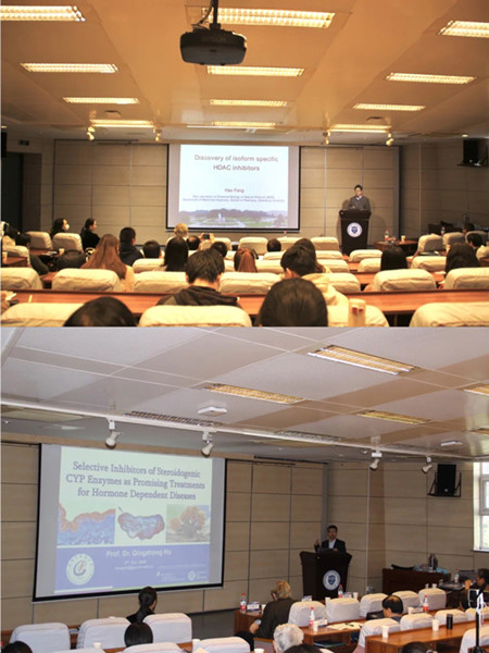 In the opening ceremony of this forum, we were honored to have Prof. Fang Hao from Shandong University and Prof. Hu Qingzhong from Guangzhou University of Traditional Chinese Medicine as our featured speaker, who presented fascinating academic lectures on subjects of “Discovery of Isoform HDAC Inhibition” and “Selective Inhibitors of Steroidogenic CYP Enzymes as Promising Treatments for Hormone Dependent Diseases”, which promoted the academic communication and broadened students’ horizons.
